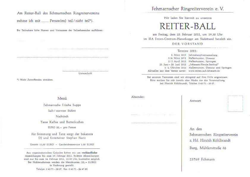 Reiterball am Freitag, dem 25. Februar 2011