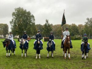Das beständige Training unter der Leitung von Julia Marrancone hat sich ausgezahlt. Der Wettkampf um die Landes-Pony-Standarte setzt sich aus drei Disziplinen zusammen. Nach einer harmonischen Vorstellung der Abteilung am Samstag folgte am Sonntag die E-Dressur. Lene Störtenbecker auf „Belmondo“ (WN 7,9) und Tomma Thiesen auf „Grenzhoehes Isis“ (WN 7,8) konnten jeweils eine Abteilung gewinnen. Im Stilspring WB belegten Henrike Amalie Mougin auf „Dazzing Danny“ (WN 8,0) und Luis Dünnebacke auf „Schierensees Now or Never“ (WN 7,9) die Plätze zwei und drei. Julie Czwalina und „Nepomuk“ beendeten den Parcours mit einer 6,7. Am Ende freuten sich alle über die Silbermedaille.