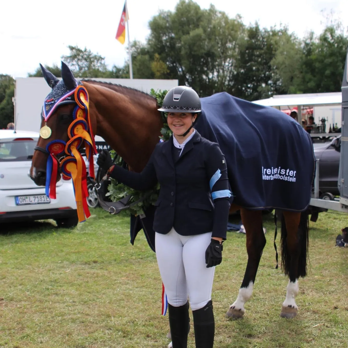 (11.09.2023/jk) Das Augenmerk der fehmarnschen Reiter lag am vergangenen Wochenende auf dem Bredenfeldplatz in Lensahn. Dort standen die Kreismeisterschaften der Leistungsklassen drei und vier im Focus. Für die Springreiter waren hierbei jeweils eine Stilspringprüfung und ein Fehler/Zeit Springen in den Klassen M* bzw. L zu absolvieren. Tomma Thiesen und „C‘est la Vie“ entschieden die erste Wertung, ein M-Stilspringen mit der Wertnote 8,6 für sich. Trotz eines Abwurfs in der zweiten Wertungsprüfung reichte es zum Titelgewinn in der Leistungsklasse drei. Zudem gab es die erste M** Platzierung für das Paar. Carl-Christian Rahlf freute sich über die Silbermedaille in LK 3. Ihren Titel aus dem Vorjahr konnten Selina Vöge und „Caramac“ in der Leistungsklasse vier souverän verteidigen. Nach Platz fünf im Stilspringen, waren die beiden mit einem Sieg in der zweiten Wertung dann nicht mehr zu schlagen. Zudem gewann das eingespielte Duo noch drei weitere Prüfungen. Mathies Rüder und sein Hengst „For Freedom EKT“ nutzten ihre gute Form und triumphierten im Hauptspringen der Klasse S. Zuvor gewann der Blieschendorfer mit Nachwuchspferd „Carlesta ein M* Springen. Zwei Siege gab es ebenfalls für Franziska Prange mit „Olympus“ und auch für Henrike Amalie Mougin. Goldene Schleifen brachten zudem noch Inga Czwalina, Sven-Gero Hünicke, Kai Rüder, Paula-Marie Langhans und Lilly Elisabeth Marquardt mit nach Hause. In sage und schreibe 15 Prüfungen konnten Fehmarns Reiter ganz vorne stehen und mit zusätzlich vielen weiteren Platzierungen ein überaus erfolgreiches Turnier Resümee ziehen.