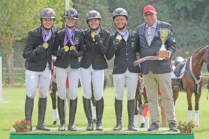 Es ist wieder Gold! Auch in diesem Jahr kehren Mathies Rüder und „Bon Ton“ mit einer goldenen Medaille von der Nachwuchs Vielseitigkeits Europameisterschaft diesmal aus dem italienischen Montelibretti zurück. Zusammen mit dem deutschen Team sicherte der Junior den Sieg. Als erste Teilprüfung stand die Dressur an. Nach einigen Spannungsmomenten gab es einen Score von 28 Punkten. Durch das nervenstarke, fehlerfreie, sichere und gute Reiten an darauffolgenden Tag im Gelände und ebenso im abschließenden Springen am dritten Wettkampftag trug der 18jährige maßgeblich zum Erfolg bei. In der Einzelwertung kam der Blieschendorfer im Endklassement final auf einen sechsten Rang und reichte den Europameister Titel an Mannschaftskameradin Smilla Maline Philipp mit „Sir Boggles“ weiter, die ebenfalls mit ihrem Dressurergebnis beendete und wie Rüder im letzten Jahr damit einen Start-Ziel-Sieg verbucht. Den großen Aufwand einer Vielseitigkeit schafft man nur mit einem starken Background. Neben der familiären Unterstützung durch die Eltern und seiner Schwester, gab es für Mathies vor dem Gelände noch einen Überraschungssupport durch Freunde und Springreiter Kollegen aus Schleswig-Holstein, die spontan zum Daumen drücken nach Rom flogen. Hedwig Wikstöm und „Chiara‘s Charm“ vertraten bei den Jungen Reitern (bis 21 Jahre) die finnischen Farben. Stark geschwächt aufgrund einer Magen-Darm-Grippe beendete sie die Prüfung im Mittelfeld. Herauszuheben das gute Abschlussspringen mit nur einem Abwurf im anspruchsvollen Parcours, den nur die damit siegreiche Europameisterin Charlotte Bordas mit „Firewall des Aucles Z“ fehlerfrei absolvierte. Nun heißt es „Arrivederci“ Fehmarn und „Hola“ Barcelona. Nach einigen Jahren auf dem Gestüt Rüder verlässt Hedda die Insel für ein geplantes Studium in Spanien.
