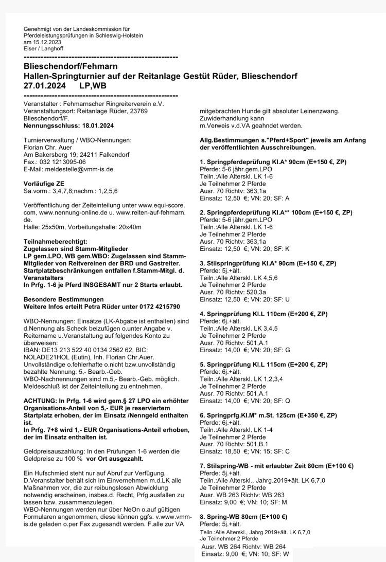 Ausschreibung Fehmarn Pferde Festival 27.-30.06.2024